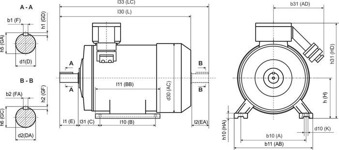 Основное (базовое) исполнение – асинхронный трехфазный взрывозащищенный электродвигатель, предназначенный для режима работы S1 (допускают работу в режиме S2, S3, S4), с питанием от сети переменного тока 50 Гц напряжением 220В, 380В, 660В, 1140В. Исполнение по взрывозащите РВ 3В (ExdI), климатическое исполнение и категория размещения У2,5; степень защиты IP54, с типовыми техническими характеристиками, соответствующими требованиям стандартов.
