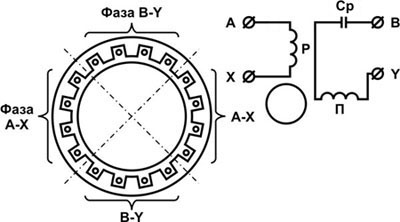 Рис. 2. Укладка обмоток в статоре однофазного электродвигателя